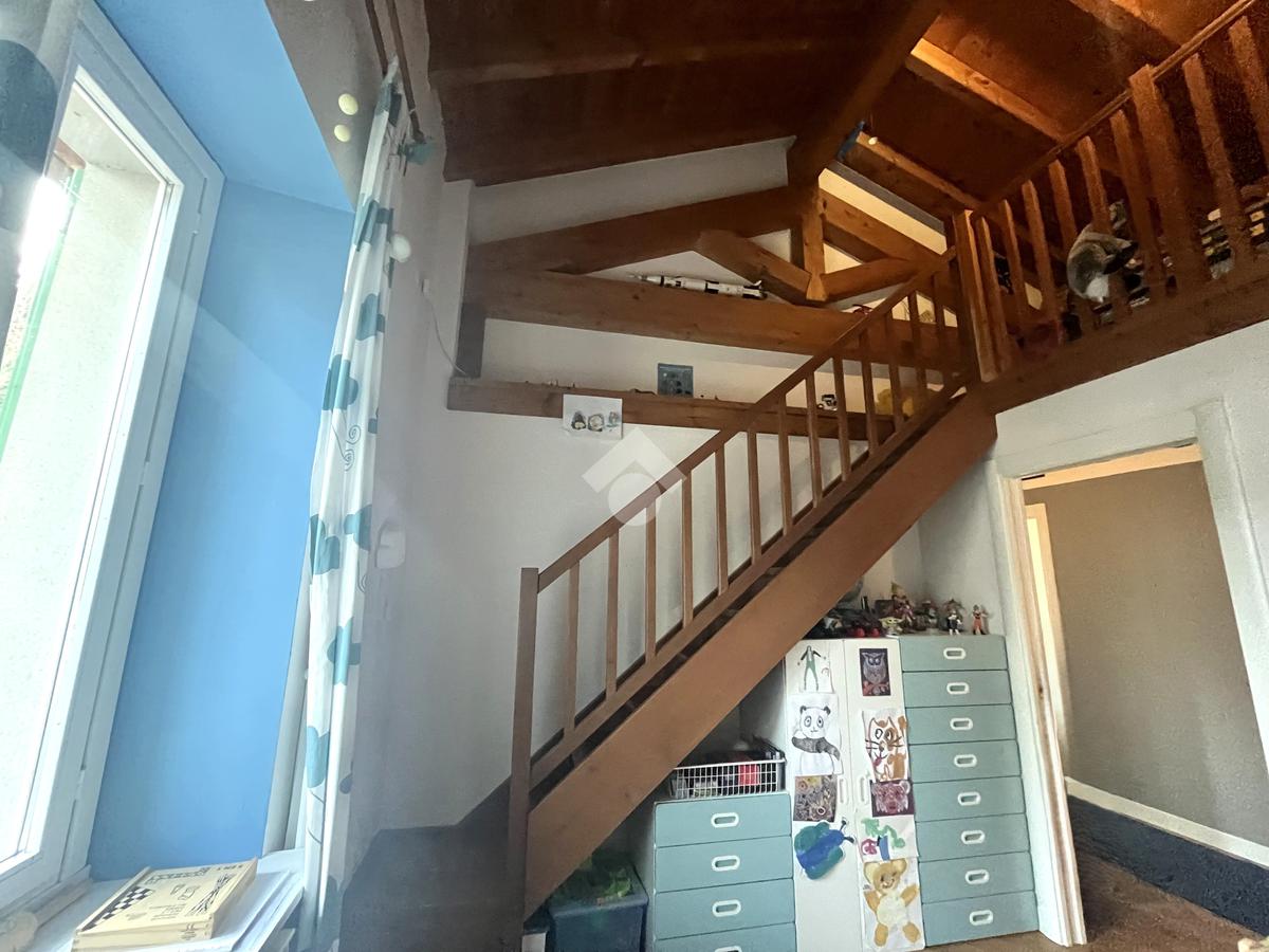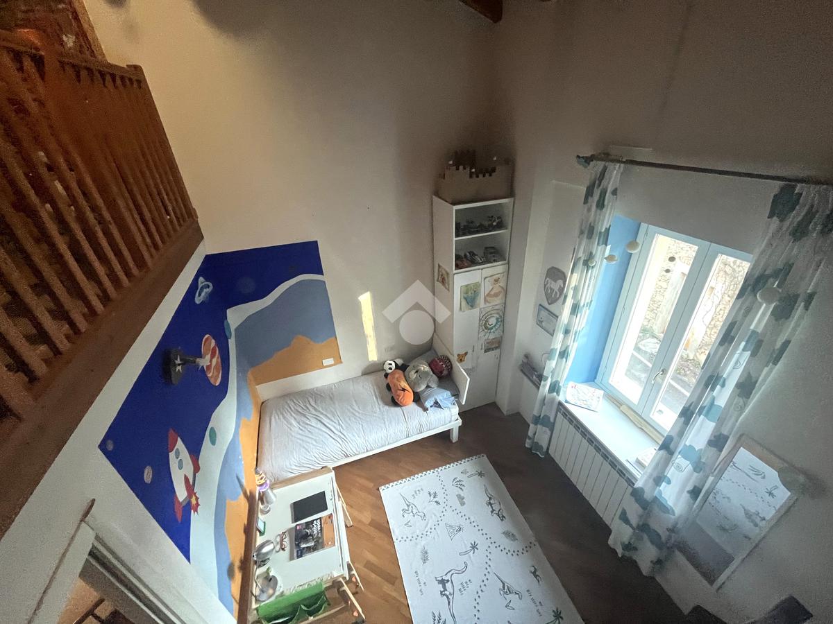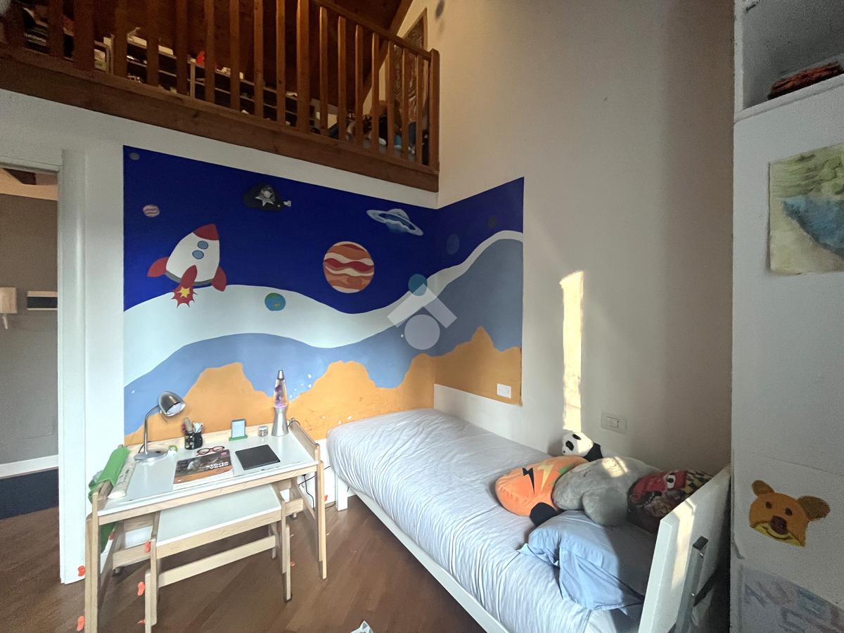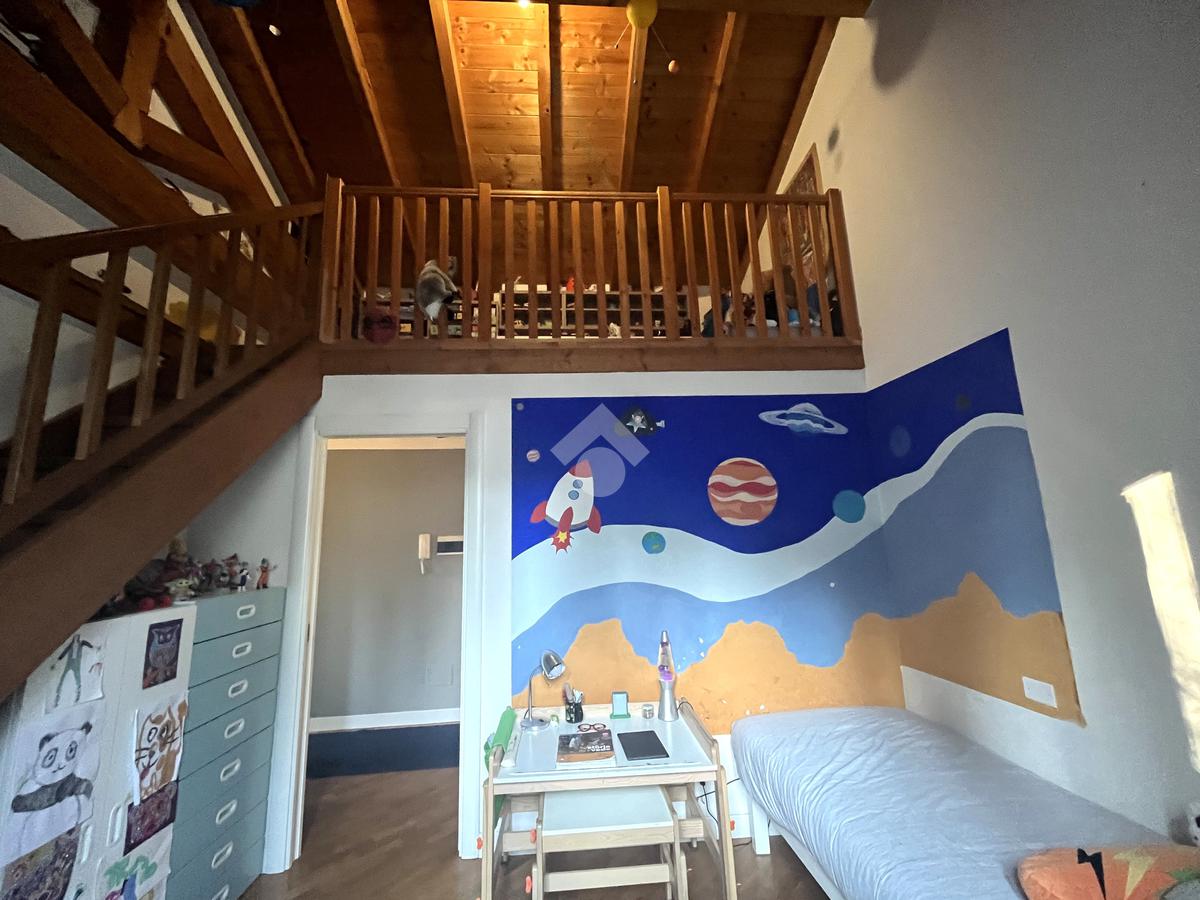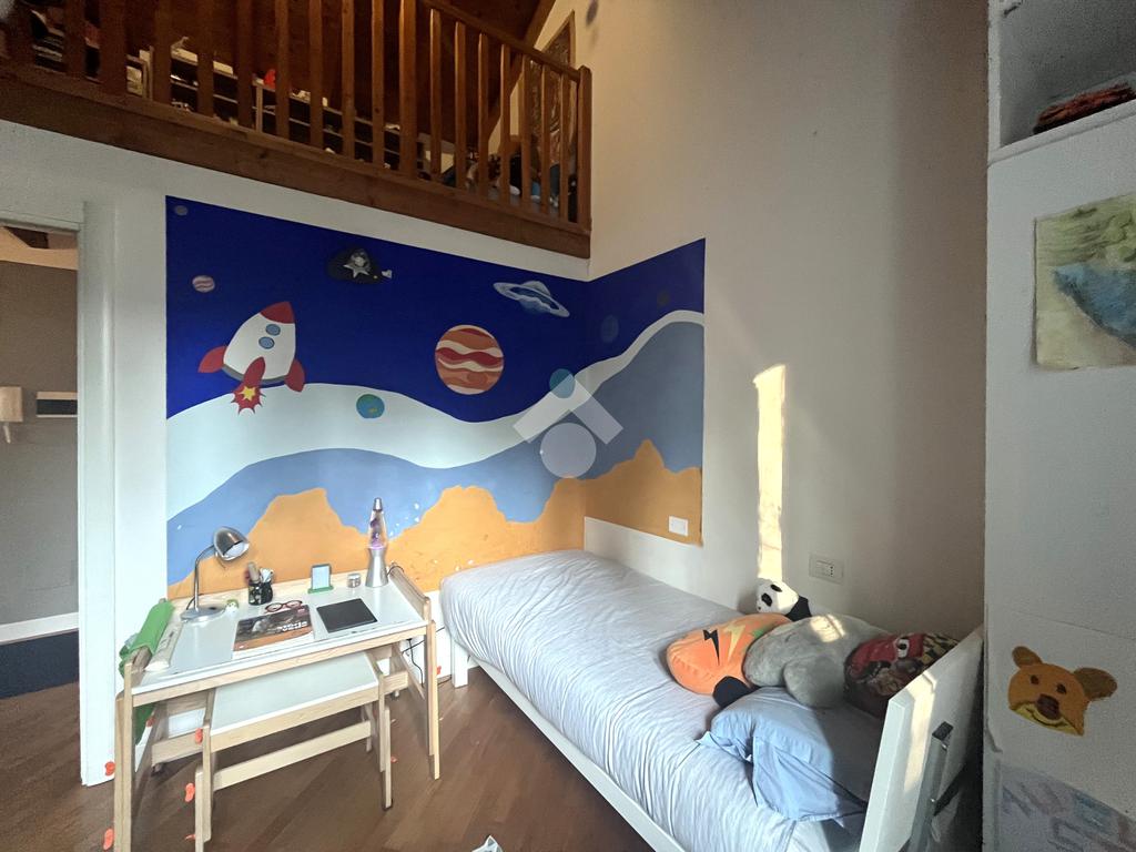 Salendo al primo piano si sviluppa la zona notte, composta da due camerette con soppalco, pensate per sfruttare al meglio gli spazi, un bagno finestrato con vasca idromassaggio e una raffinata camera matrimoniale impreziosita da travi a vista e balcone privato, che conferiscono calore all’ambiente.
