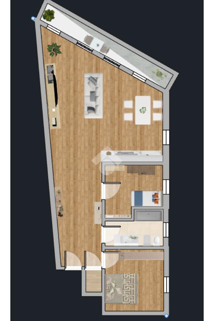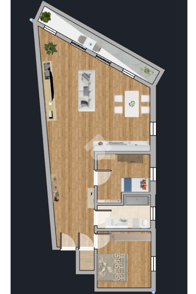 La soluzione, inserita in mini palazzina di sole due unità abitative, è sita al primo ed ultimo piano. Si compone di ampio ingresso, grande zona giorno con cucina a vista, comodo ripostiglio, camera matrimoniale, bagno finestrato e seconda camera, utilizzabile anche come studio. Piacevole sfogo viene dato dal balcone che abbraccia tutta la zona living.
