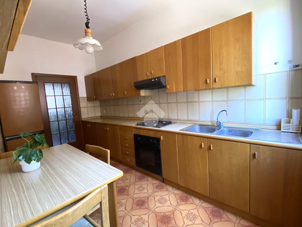 Un disimpegno funzionale conduce alla cucina abitabile, perfetta per la vita quotidiana, e al bagno finestrato completo di vasca, che conferisce ulteriore comfort.