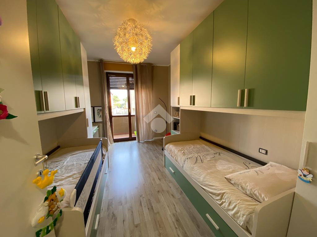 La zona notte si compone di un ripostiglio, una ampia cameretta con balcone, un bagno finestrato elegante e funzionale e una spaziosa camera matrimoniale.